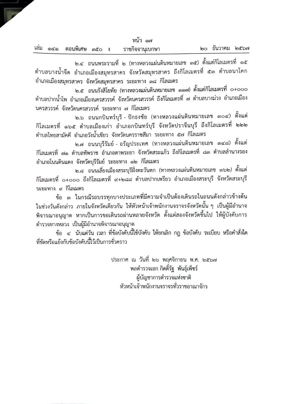 ข้อบังคับหัวหน้างานเจ้าพนักงานจราจรทั่วราชอาณาจักร ว่าด้วยการกำหนดห้ามรถบรรทุก 10 ล้อขึ้นไป เดินในถนนบางสายช่วงเทศกาลปีใหม่ประจำปี 2568