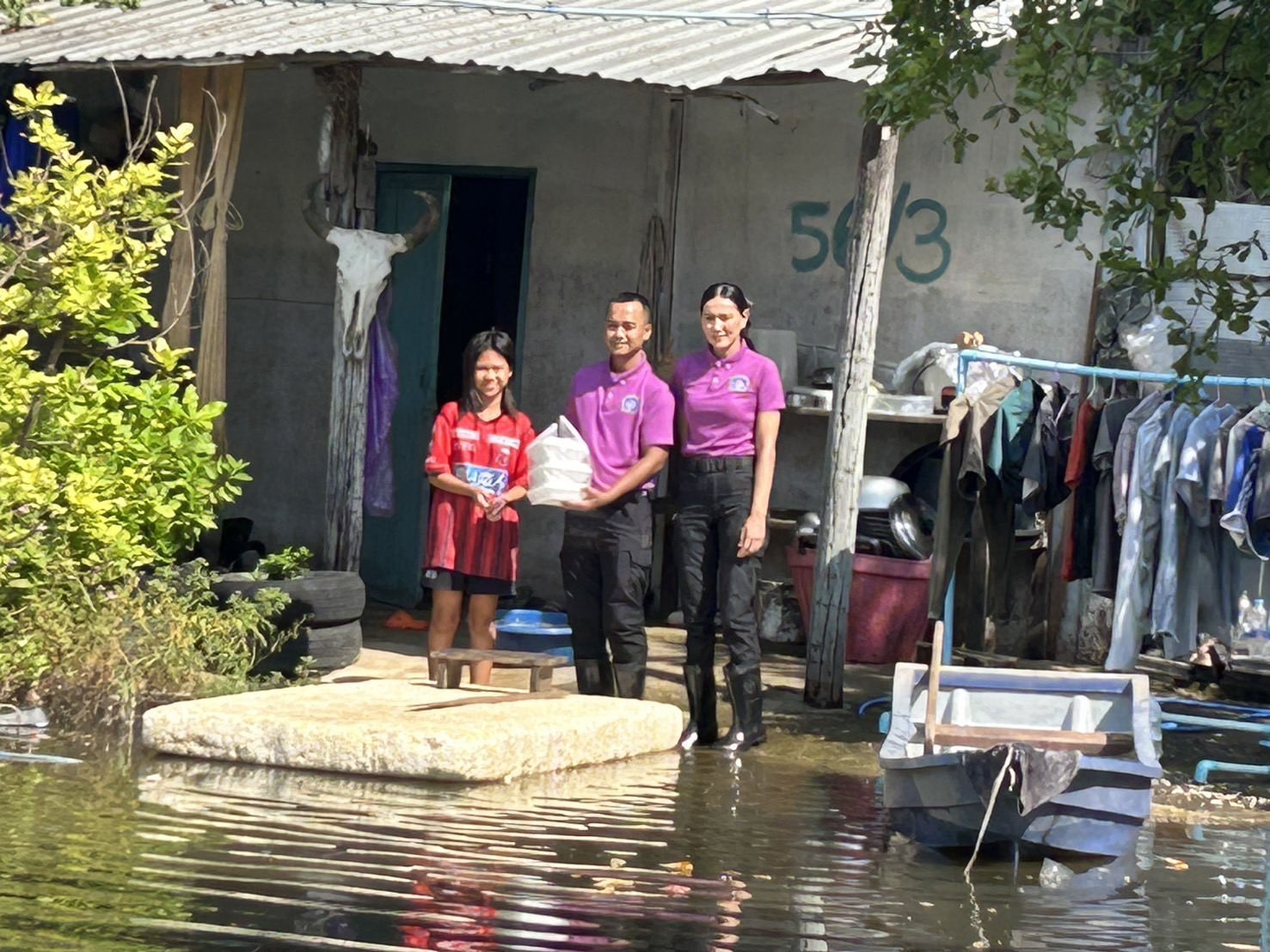 ลงพื้นที่ตรวจสอบเหตุอุทกภัยทางน้ำ พร้อมมอบสิ่งของช่วยเหลือผู้ประสบอุทกภัย ในพื้นที่รับผิดชอบ ของ สภ.หนองปลิง