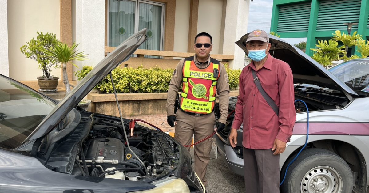 ศูนย์จราจร ส.ต.ต.สหรัฐ สุราภา ผล.หมู่(ผช.พงส.) สภ.หนองปลิง ให้ความช่วยเหลือประชาชน เกี่ยวกับรถมีปัญหา