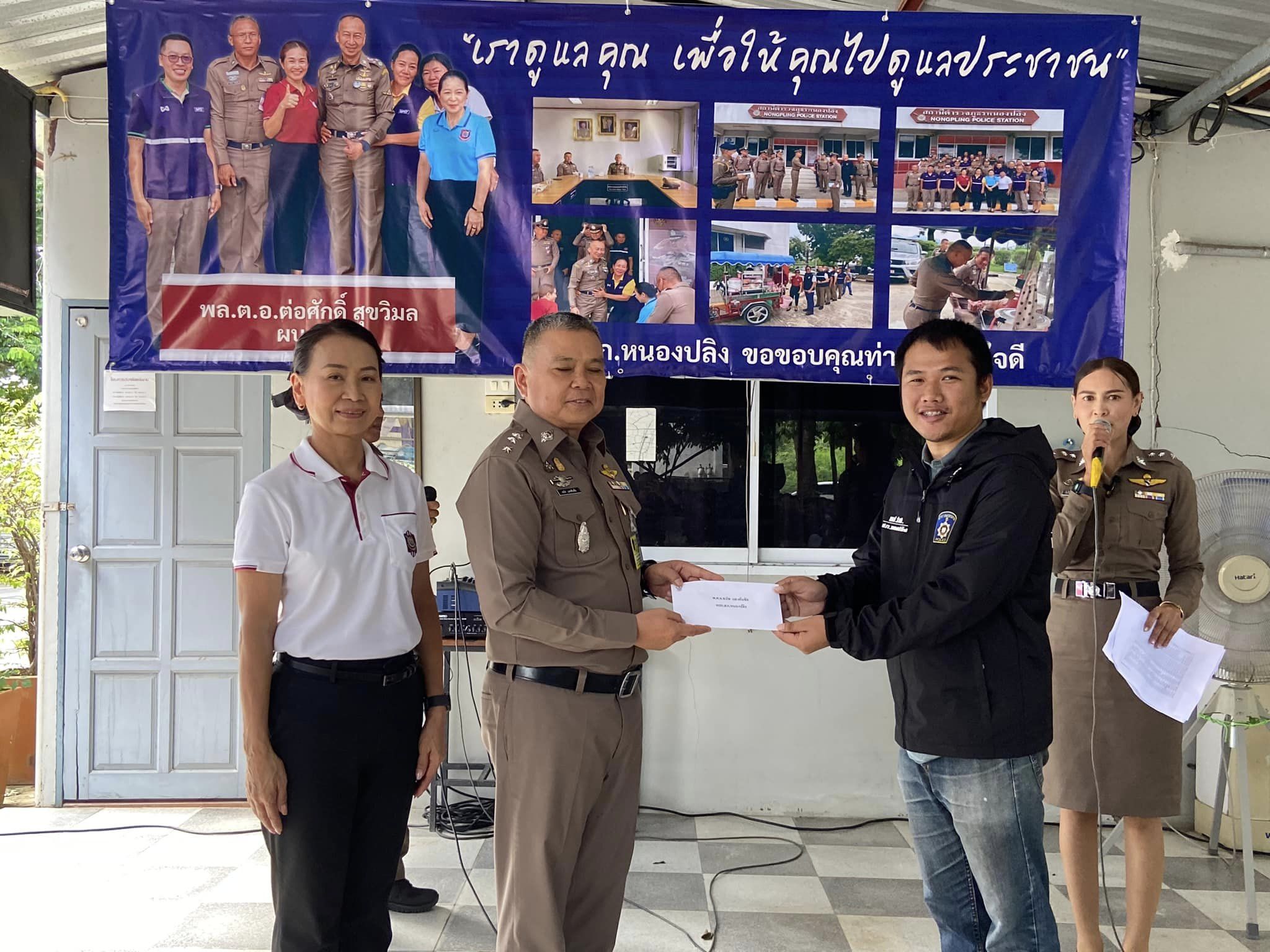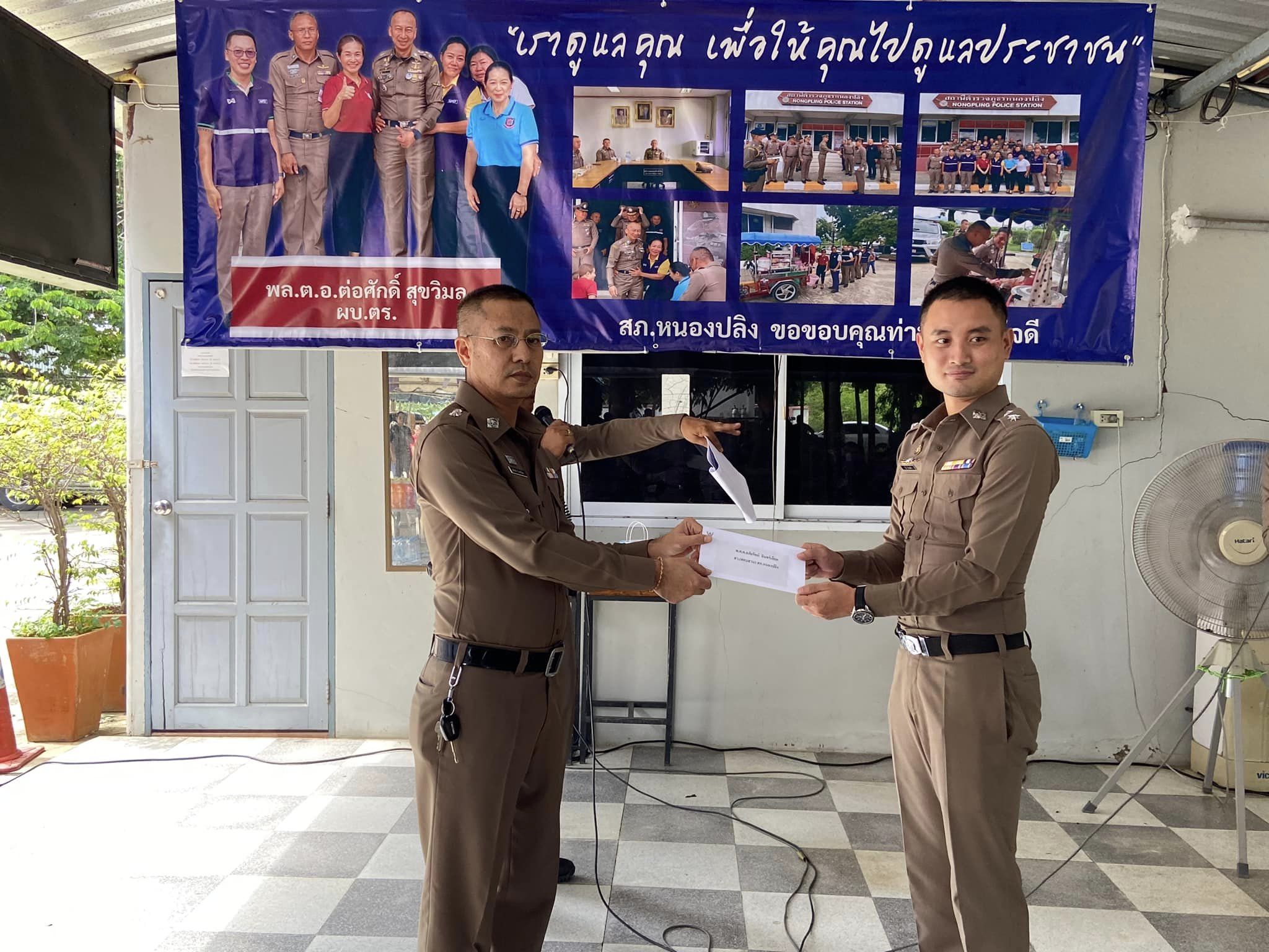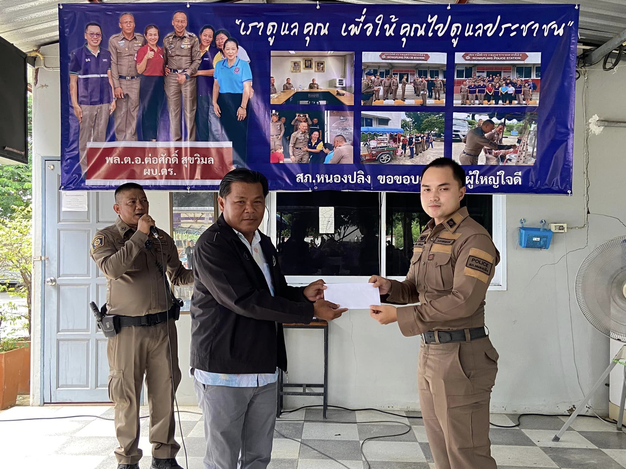 พร้อมด้วย ข้าราชการตำรวจ สภ.หนองปลิง และ กต.ตร.สภ.หนองปลิง ได้จัดกิจกรรม เลี้ยงอาหารและจับเงินรางวัล ให้กับข้าราชการตำรวจ สภ.หนองปลิง โดยสืบเนื่องมาจาก เมื่อวันที่ 27 ตุลาคม 2566 เวลา 11.39 น. พล.ต.อ.ต่อศักดิ์ สุขวิมล ผบ.ตร. ได้มาตรวจเยี่ยม สถานีตำรวจหนองปลิง และได้มอบเงินจำนวนหนึ่งเพื่อให้จัดทำกิจกรรมเลี้ยงอาหารและจับเงินรางวัล ให้กับข้าราชการตำรวจ สภ.หนองปลิง เพื่อเป็นขวัญกำลังใจในการปฏิบัติหน้าที่และรับใช้ประชาชนให้เป็นไปตามนโยบายของผู้บังคับบัญชา ดังคำกล่าวว่า “เราดูแลคุณ เพื่อให้คุณไปดูแลประชาชน”