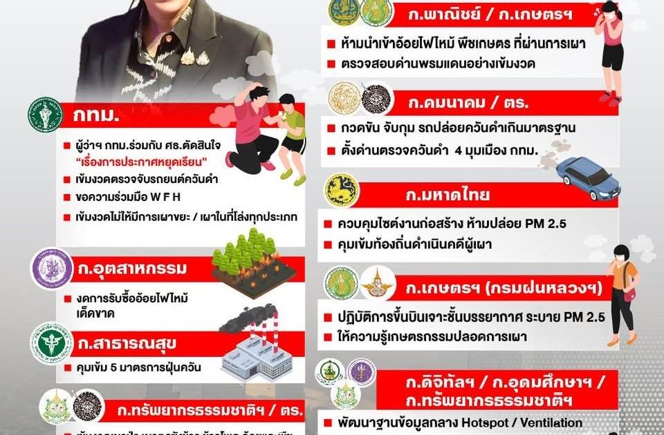 ก.เกษตรฯ : ขอ กรมฝนหลวงและการบินเกษตร ขึ้นบินเจาะชั้นบรรยากาศระบายการสะสมของฝุ่น หน่วยงานอื่นลงพื้นที่ ให้ความรู้เกษตรแบบปลอดการเผา