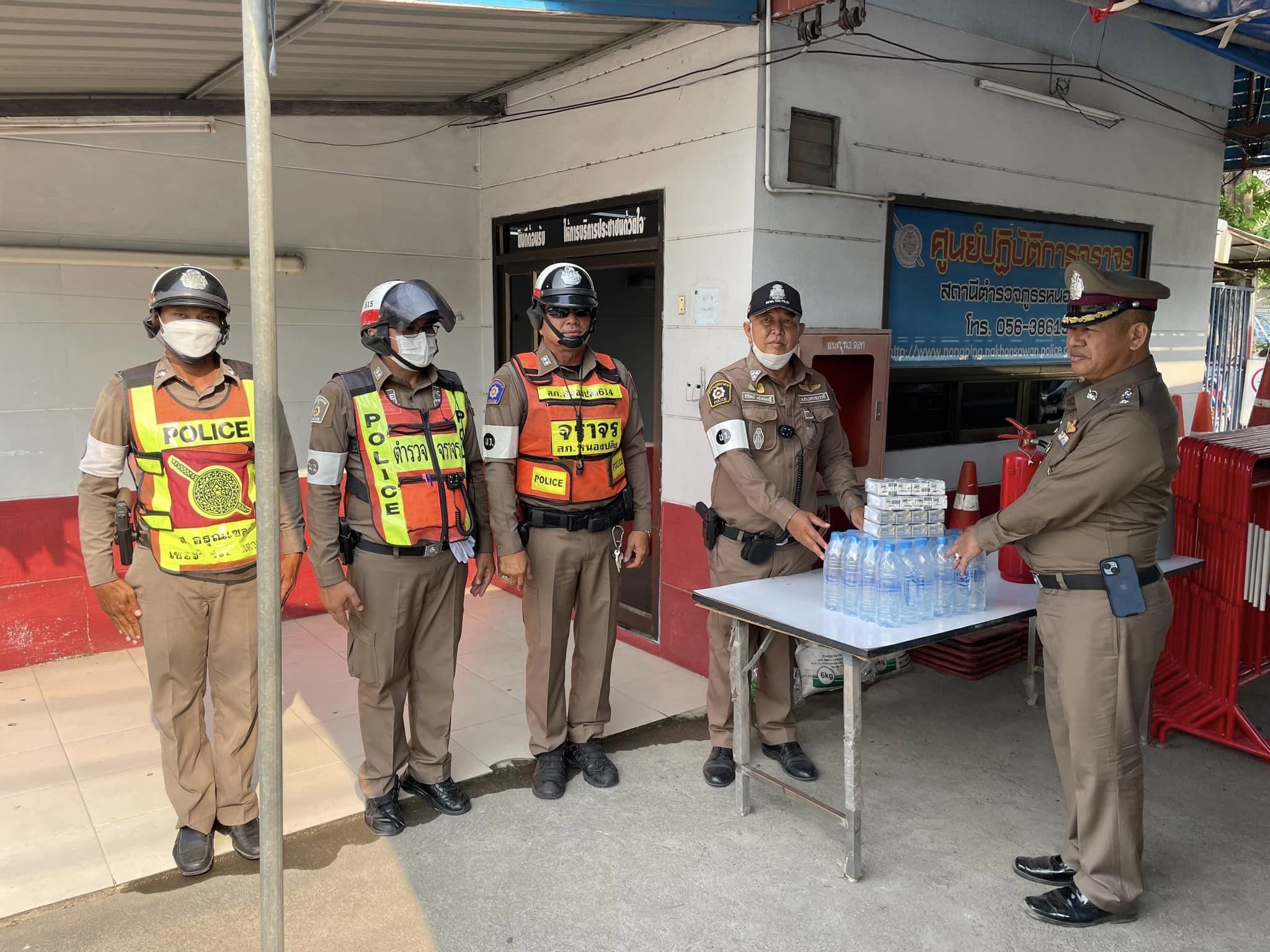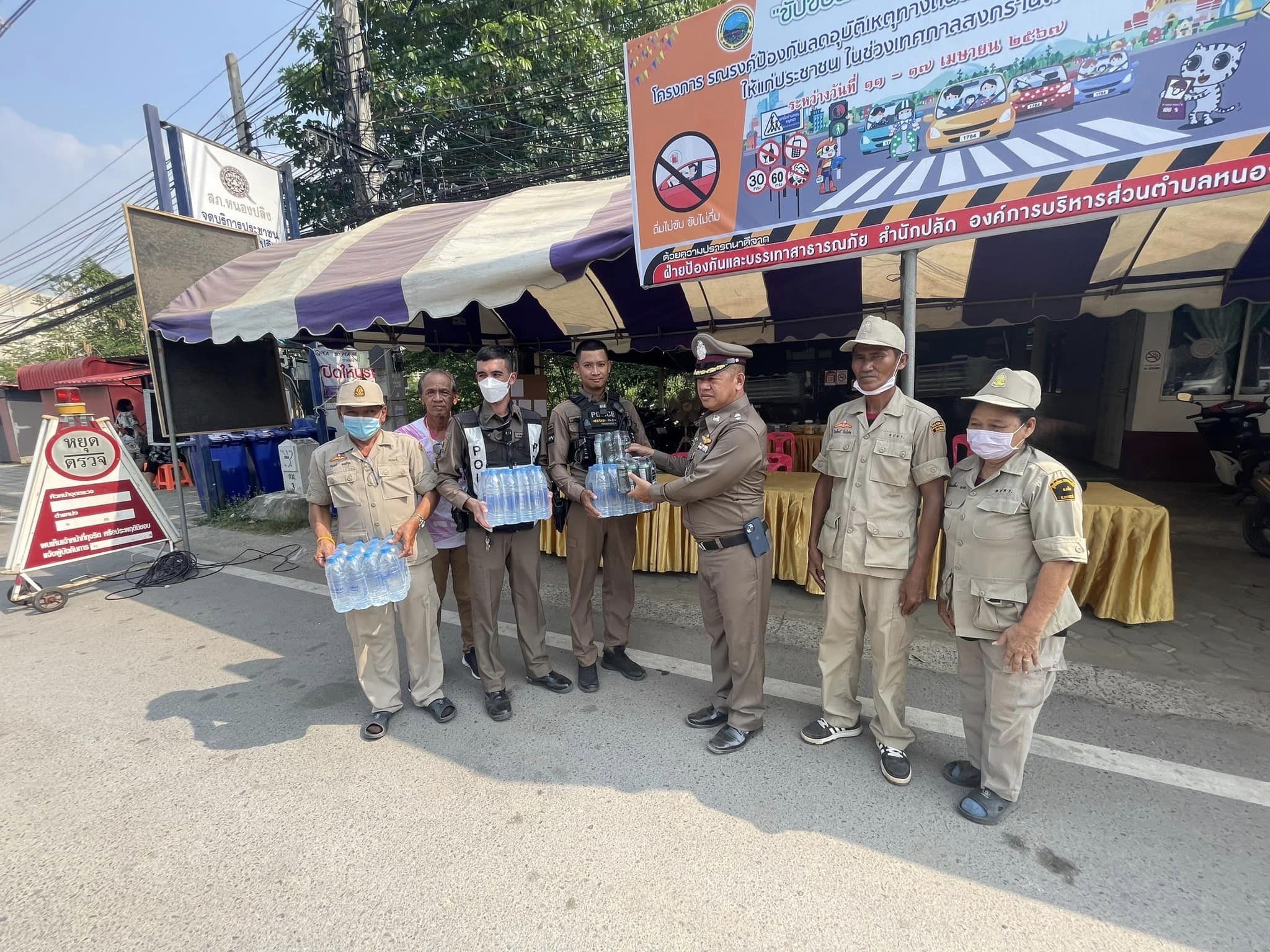 และได้มอบเครื่องดื่มชูกำลังและน้ำดื่ม ให้เจ้าหน้าที่ปฏิบัติหน้าที่เพื่อเป็นขวัญกำลังใจในการปฏิบัติหน้าที่อย่างเคร่งครัดช่วงเทศกาล