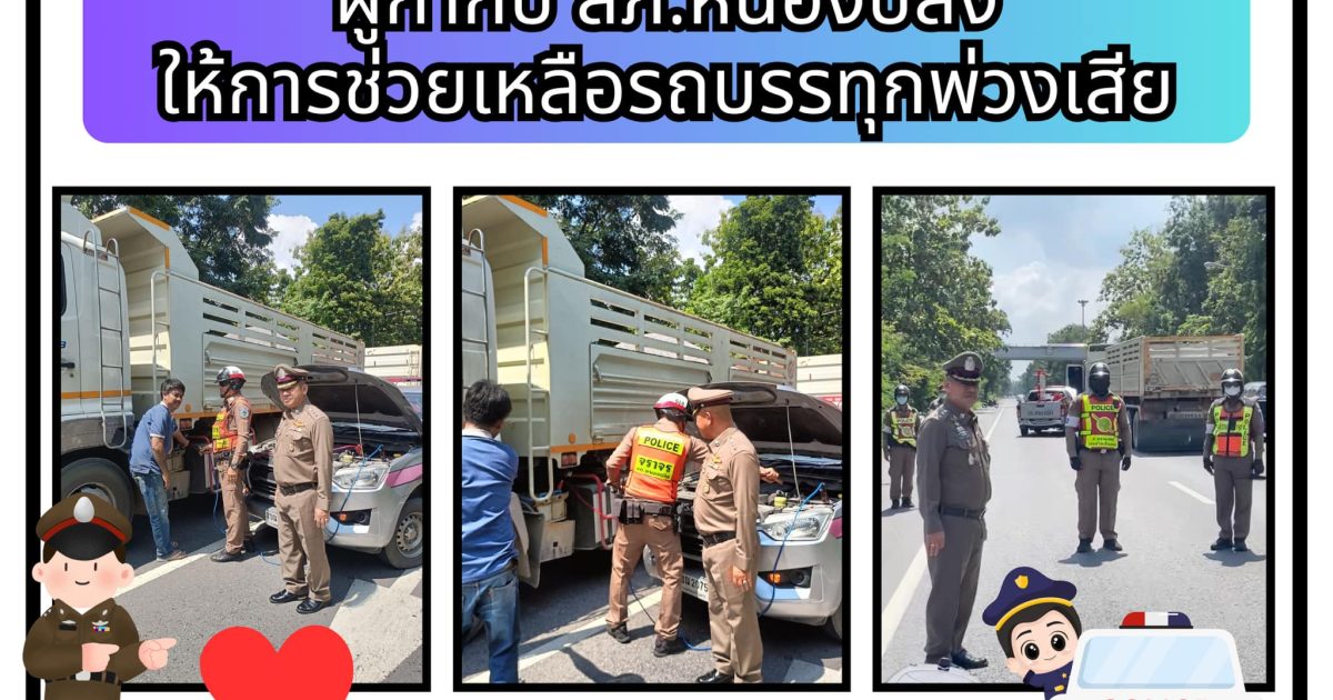 ผู้กำกับ สภ.หนองปลิง ให้การช่วยเหลือรถบรรทุกพ่วงเสีย