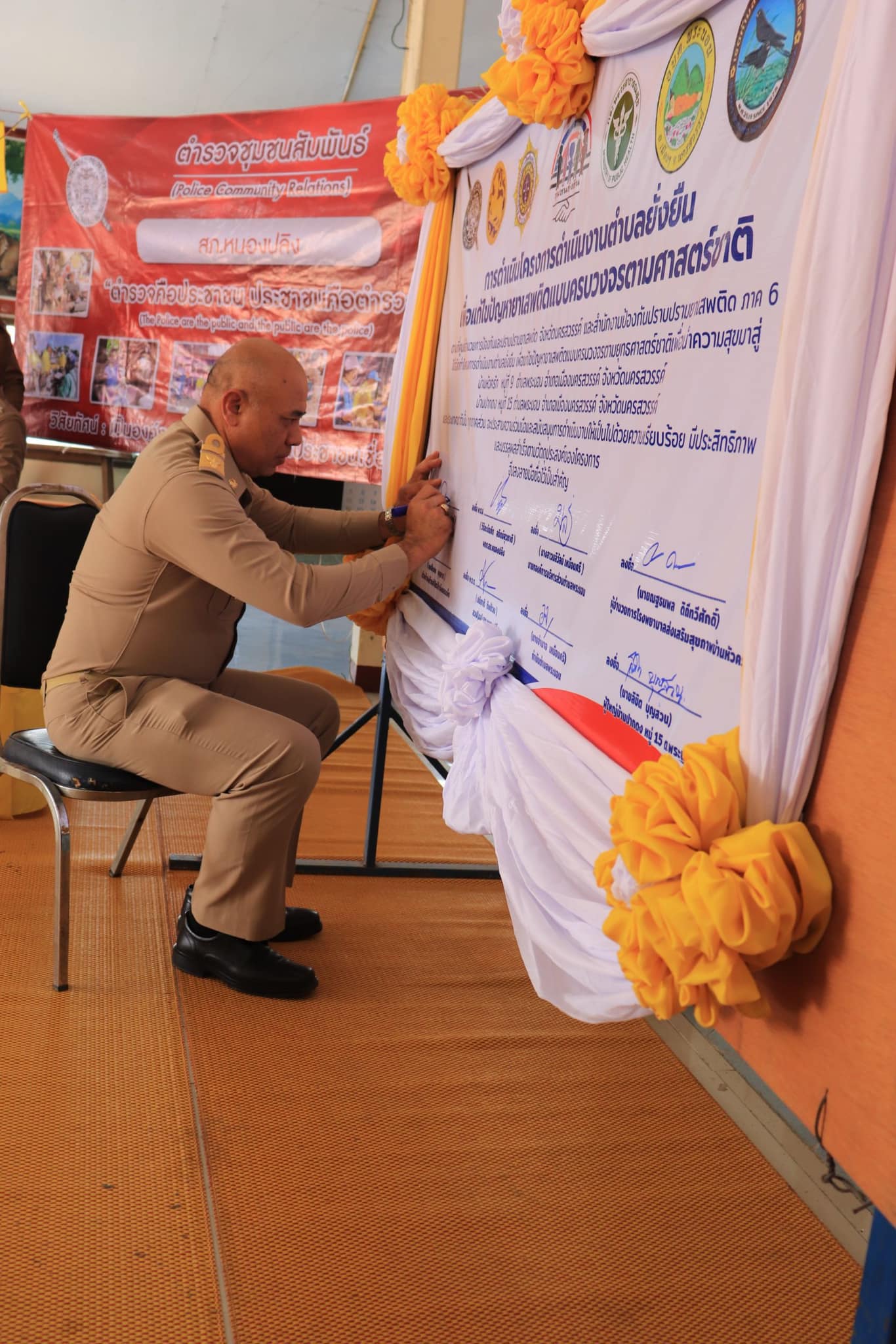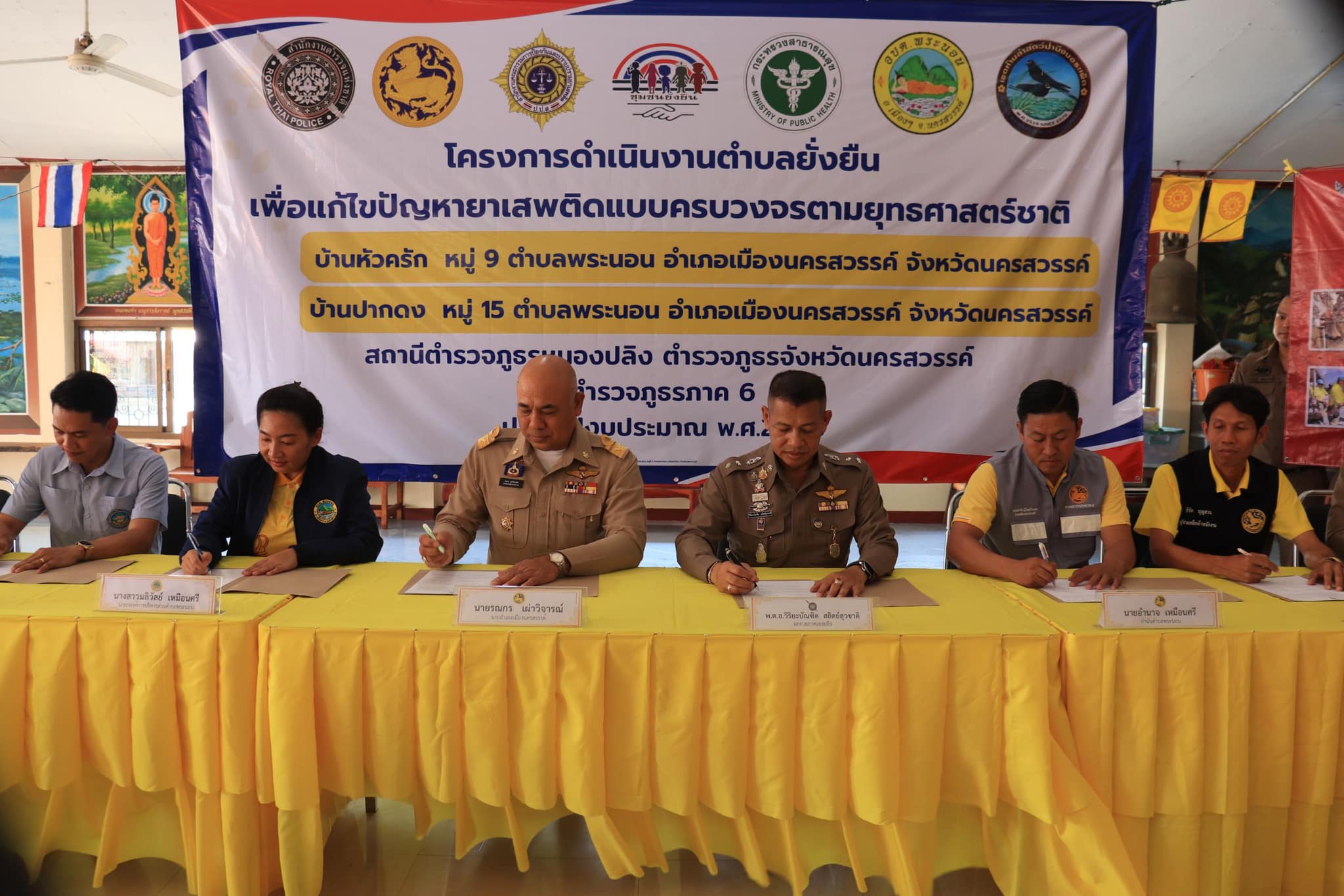 พร้อมชุดปฏิบัติการและ กต.ตร.สภ.หนองปลิง,นายก อบต.พระนอน,หน.เขตห้ามล่าสัตว์ป่าบึงบอระเพ็ด,ผอ.รพ.สต.บ้านหัวครัก/กำนันตำบลพระนอน/ผญ.บ้านปากดง /อสม./ประชาชนในพื้นที่ร่วมพิธีเปิด และลงนามบันทึกข้อตกลงการดำเนินโครงการดำเนินงานตำบลยั่งยืน เพื่อแก้ไขปัญหายาเสพติด แบบครบวงจรตามยุทธศาสตร์ชาติ 2568