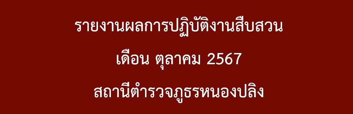 สรุปผลการปฏิบัติงาน สืบสวน ประจำเดือน ตุลาคม 2567