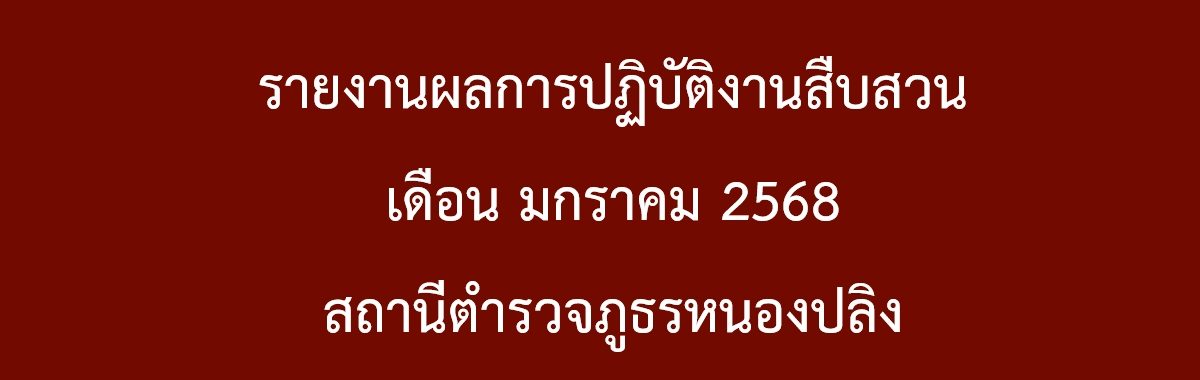 สรุปผลการปฏิบัติงาน สืบสวน ประจำเดือน มกราคม 2568
