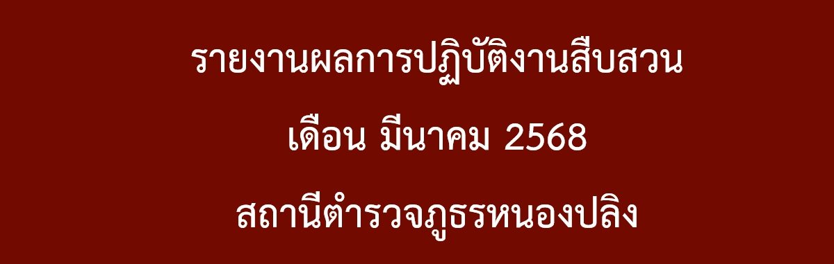 สรุปผลการปฏิบัติงาน สืบสวน ประจำเดือน มีนาคม 2568