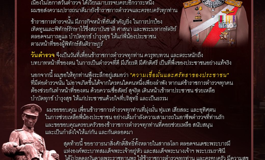 “สาร” ของ พลตำรวจเอก กิตติ์รัฐ พันธุ์เพ็ชร์ ผู้บัญชาการตำรวจแห่งชาติ เนื่องในวันตำรวจประจำปี 2567