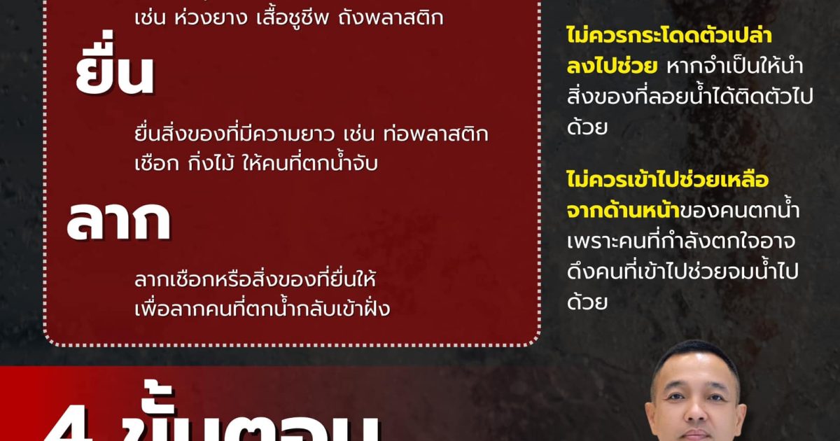 สำนักงานตำรวจแห่งชาติ แนะนำ “ตะโกน โยน ยื่น ลาก” 4 ขั้นตอนช่วยคนตกน้ำอย่างปลอดภัย