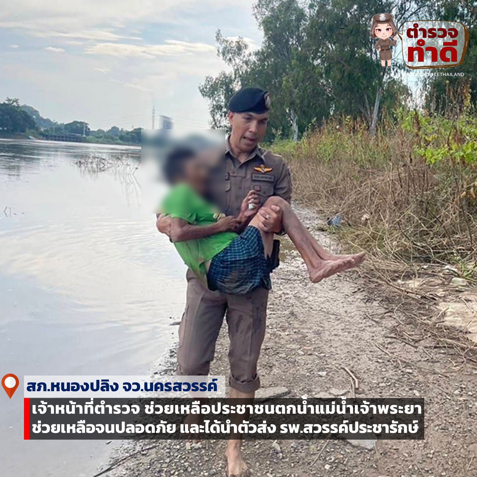 วันที่ 16 ต.ค.67 เจ้าหน้าที่ตำรวจ สภ.หนองปลิง เข้าช่วยเหลือประชาชนตกน้ำแม่น้ำเจ้าพระยา บริเวณคอกม้า