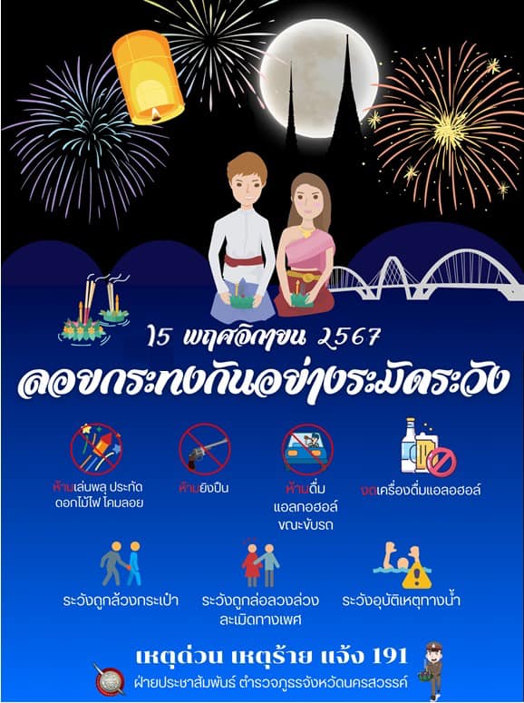 สายตรวจตำบลนครสวรรค์ออก ออกประชาสัมพันธ์นักท่องเที่ยวเนื่องในวันลอยกระทงประจำปี 2568 ในพื้นที่ ตำบลน
