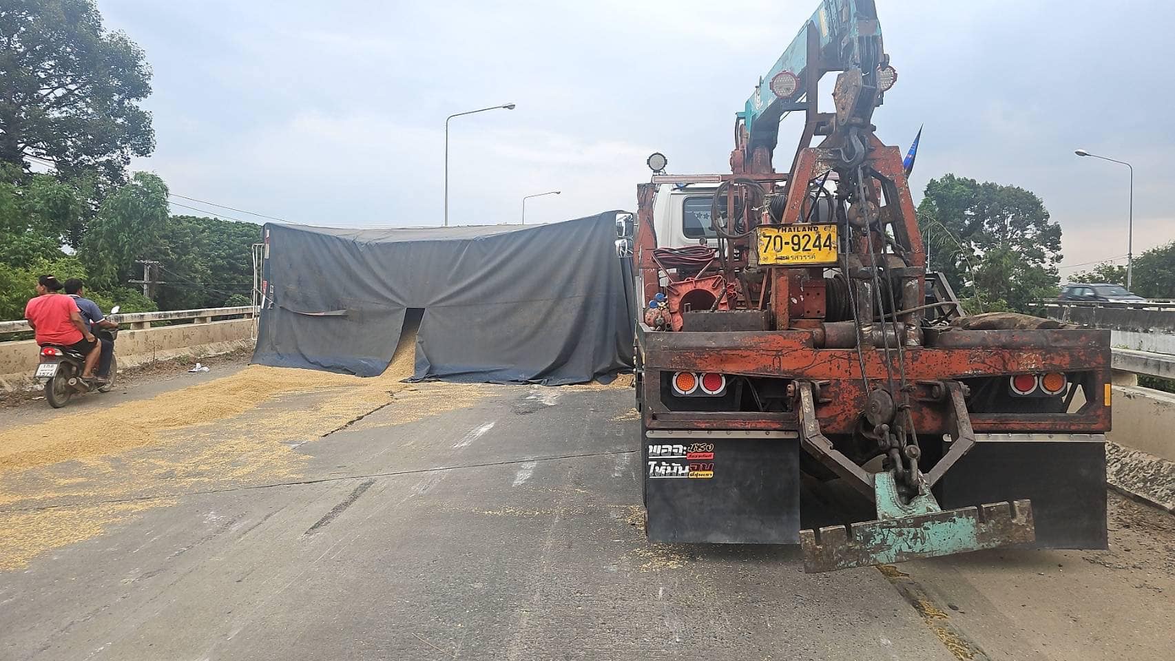 แจ้งประชาสัมพันธ์พี่น้องประชาชน เนื่องจากเกิดอุบัติเหตุรถบรรทุกพลิกคว่ำถนนสายเลี่ยงเมืองนครสวรรค์ บร