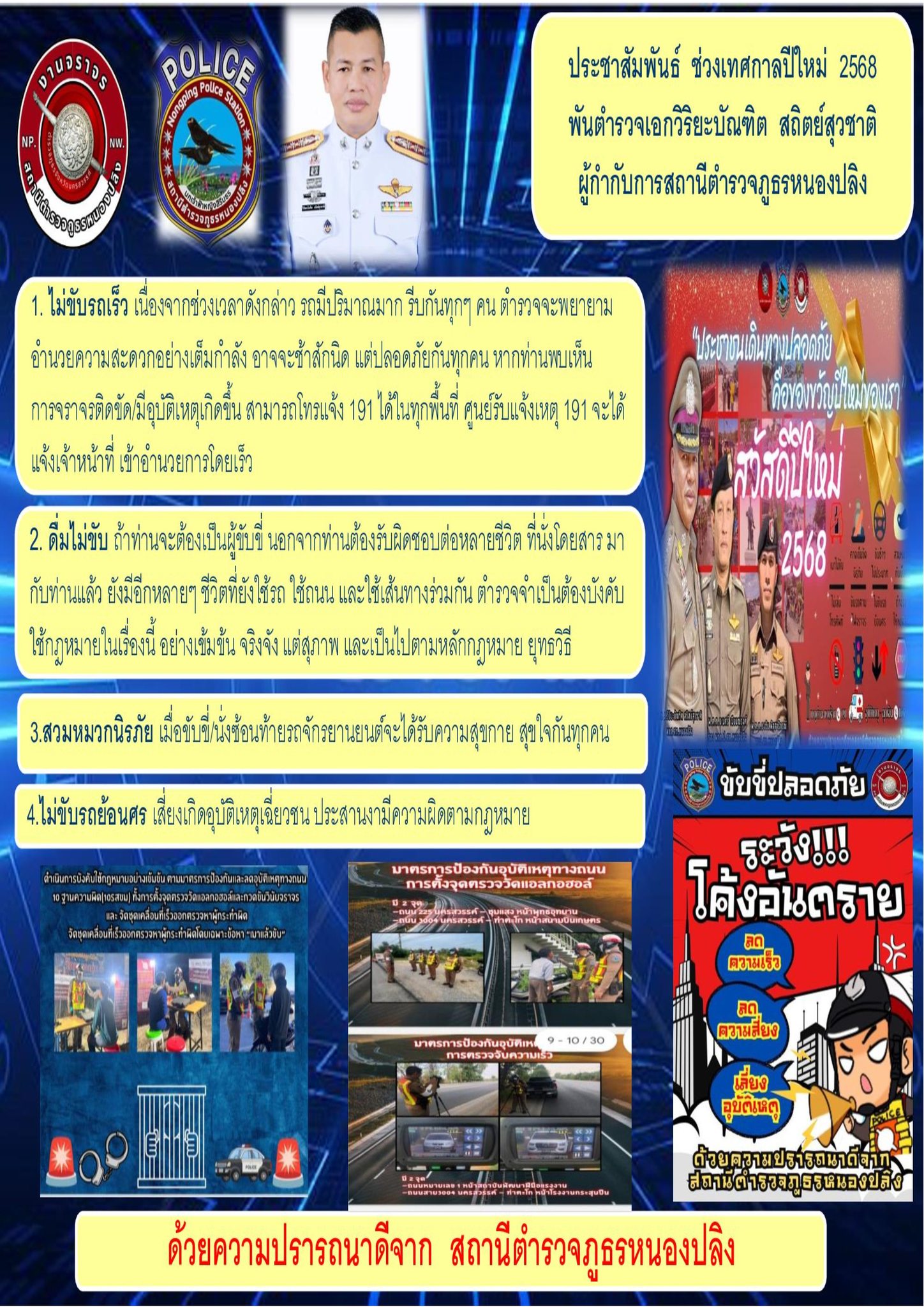 พ.ต.ท.ธงชัย พัสสาริกรณ์ สวป.สภ.หนองปลิง ได้ทำการตรวจเยี่ยมจุดบริการประชาชนหน้าสถาบันฝีมือแรงงาน อำนวยความสะดวกประชาชนในการเดินทางช่วงเทศกาลวันขึ้นปีใหม่ พ.ศ.2568 ที่จุดบริการเตรียมความพร้อมกรณีรถประชาชนเสีย หรือน้ำมันหมด และกรณี รถ ev แบตหมด โดยมีนักศึกษาจากวิทยาลัยเทคนิคนครสวรรค์