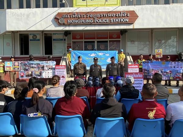สถานีตำรวจภูธรหนองปลิง มอบหมายให้ เจ้าหน้าที่ตำรวจสายตรวจบ้านใหม่ ออกประชาสัมพันธ์ประชาชนที่เดินทาง