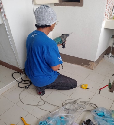 ทำการเดินท่อน้ำใหม่ภายนอกผนังห้องพักเลขที่ 907/47 เนื่องจากน้ำมีการรั่วซึมจากท่อ ทำให้น้ำไหลลงไปยังห้อง 907/39