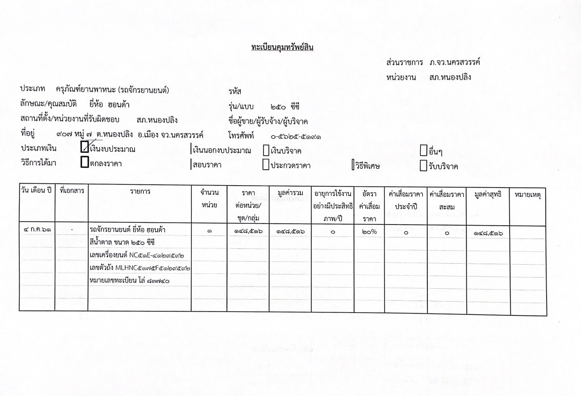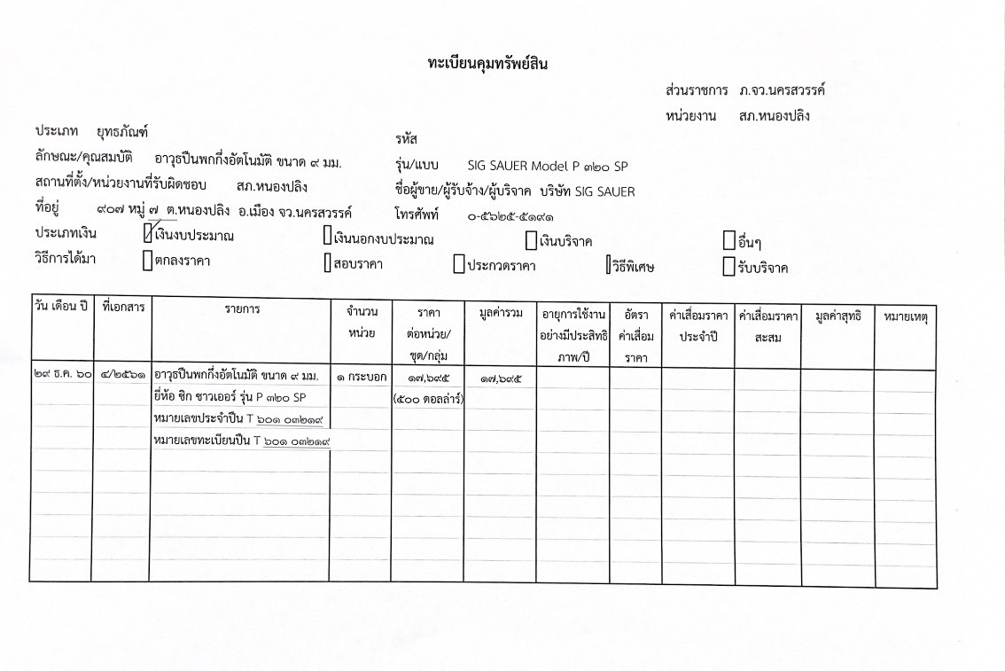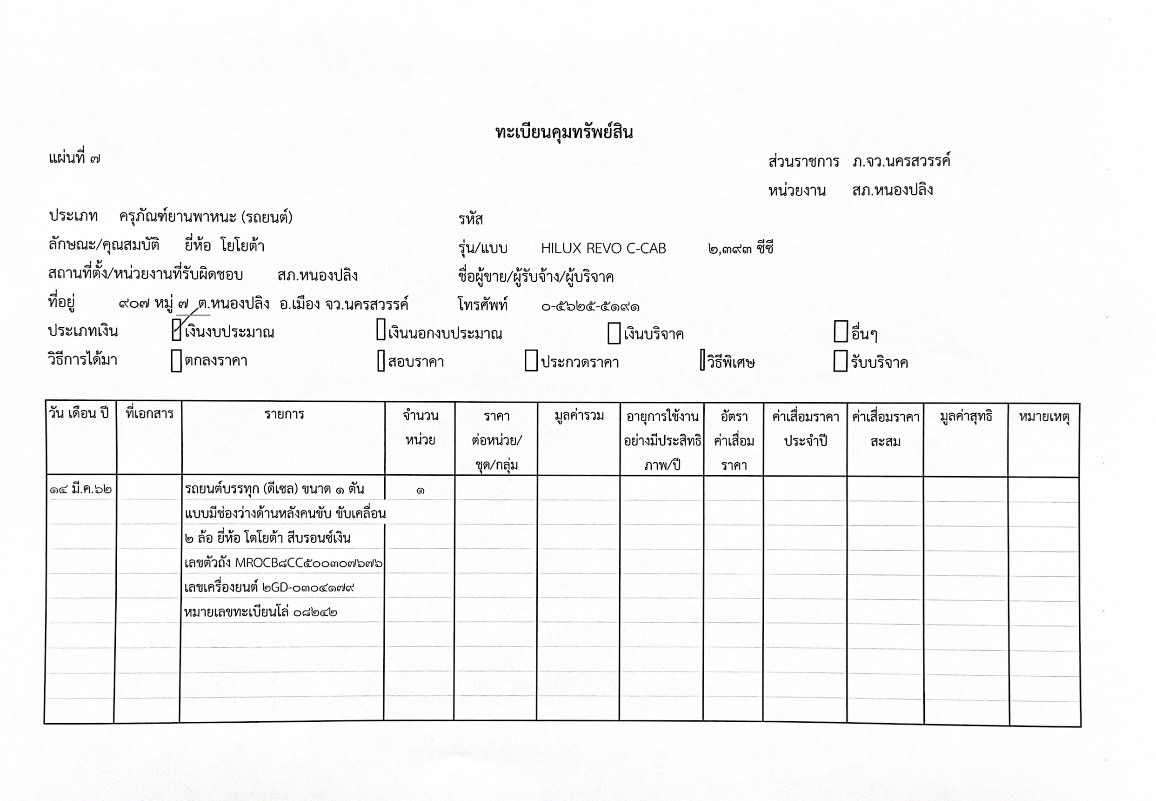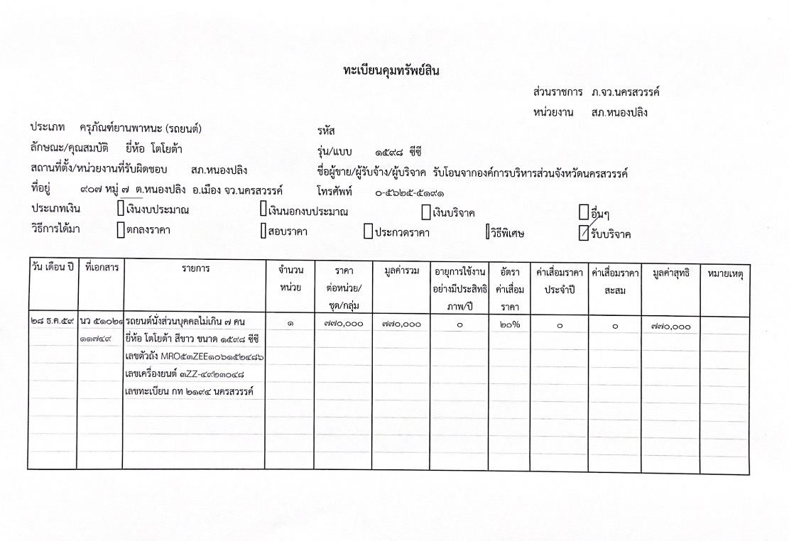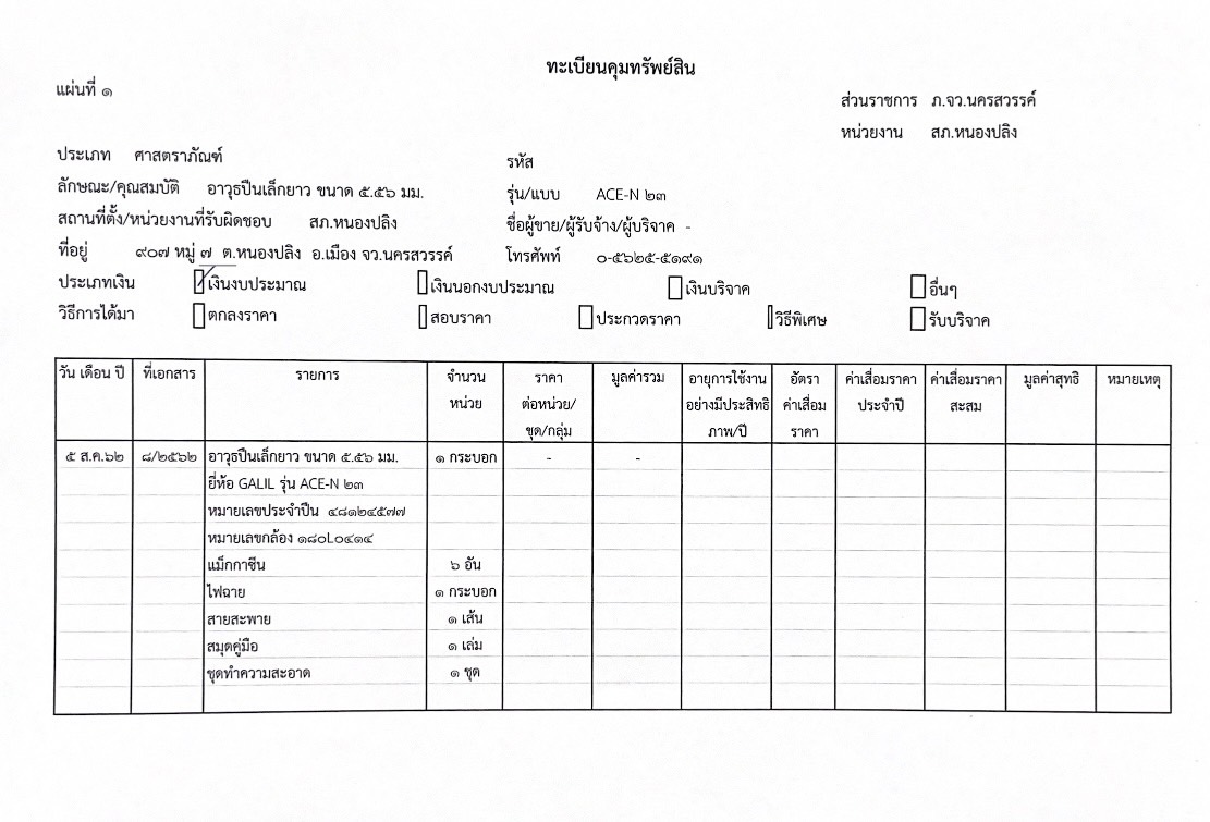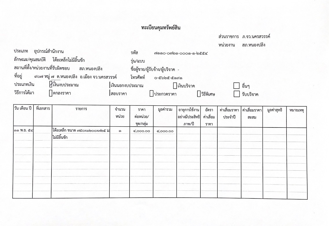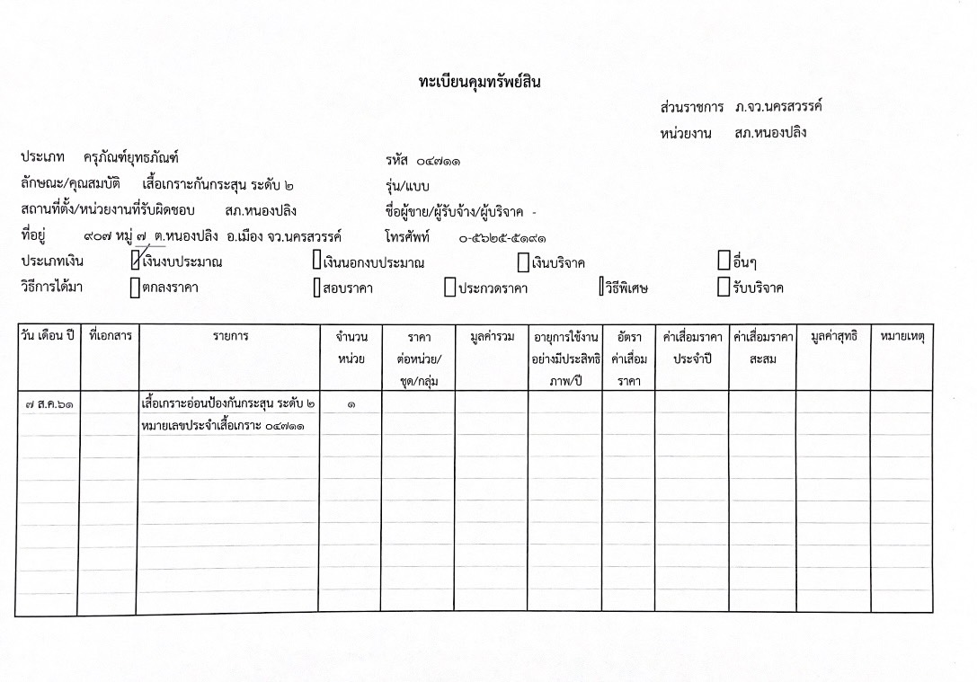 ทะเบียนคุมทรัพย์สินต่างๆ