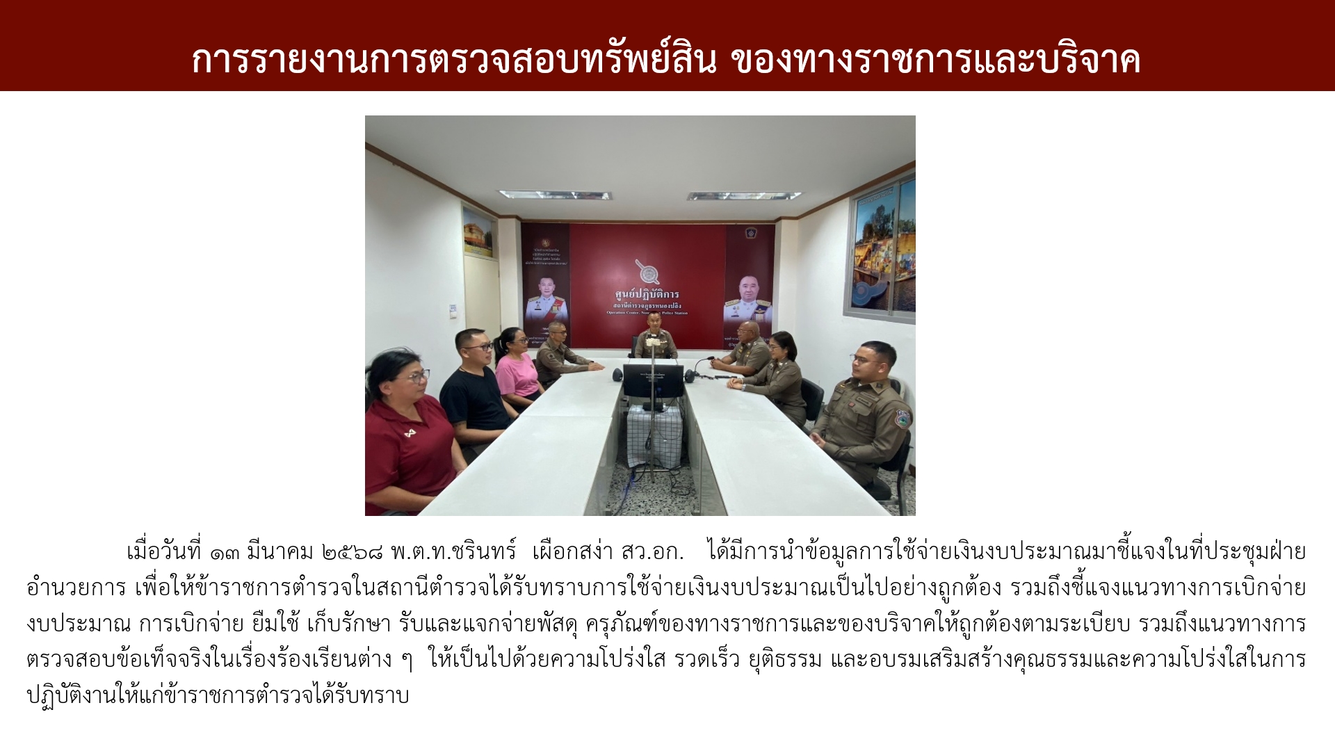 การรายงานการตรวจสอบทรัพย์สินของทางราชการและของบริจาค