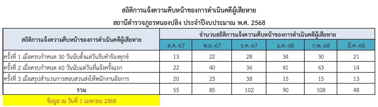 ข้อมูลสถิติการแจ้งความคืบหน้าของการดำเนินการคดี