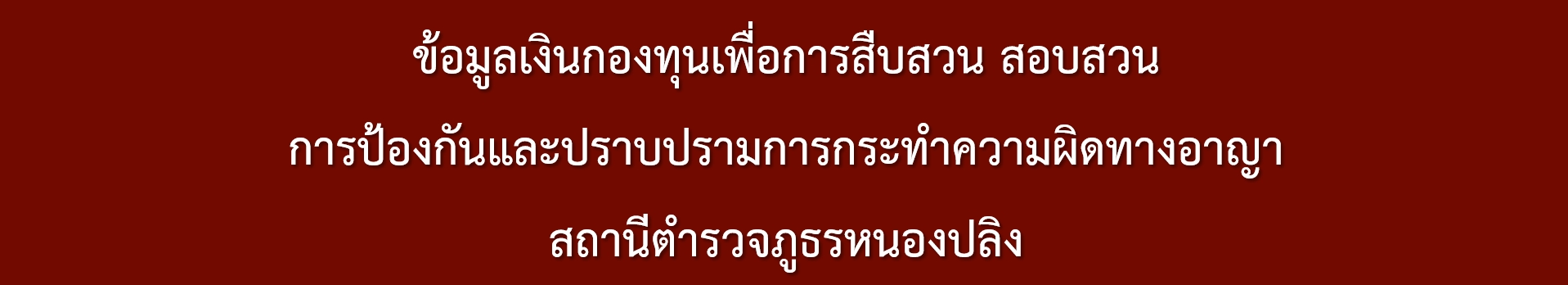 ข้อมูลเงินกองทุนเพื่อการสืบสวน สอบสวน การป้องกันและปราบปรามการกระทำความผิดทางอาญา ของ สภ.หนองปลิง ในรูปแบบ PDF