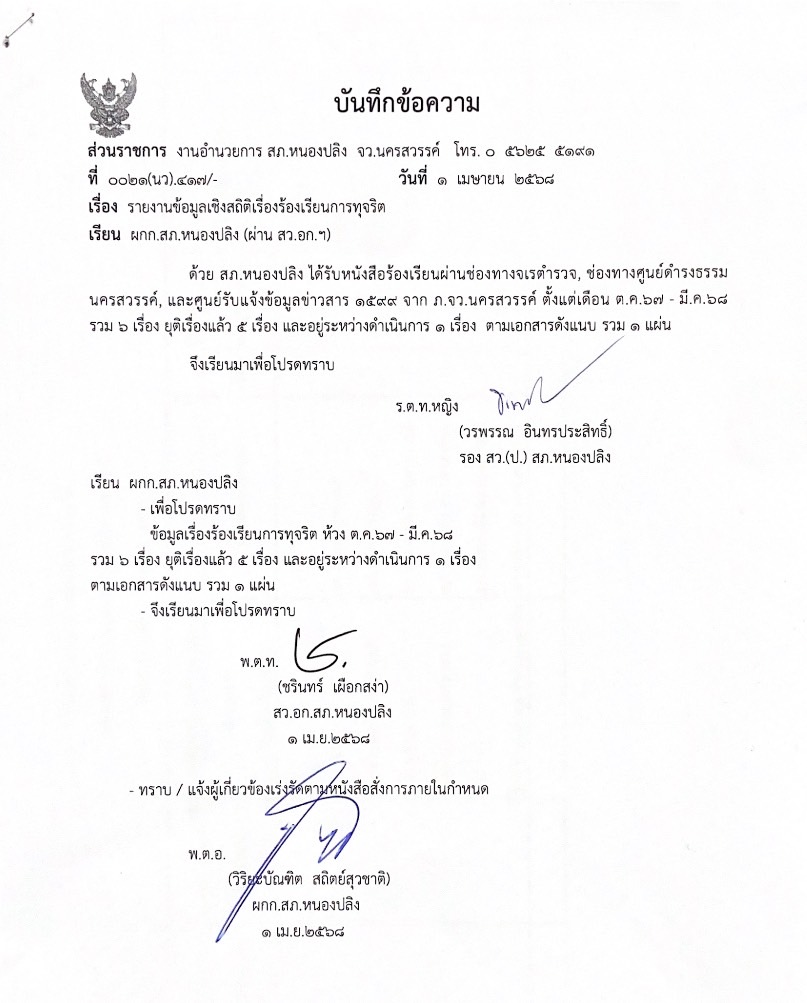 1.แจ้งเรื่องผกก.สภ.หนองปลิง
