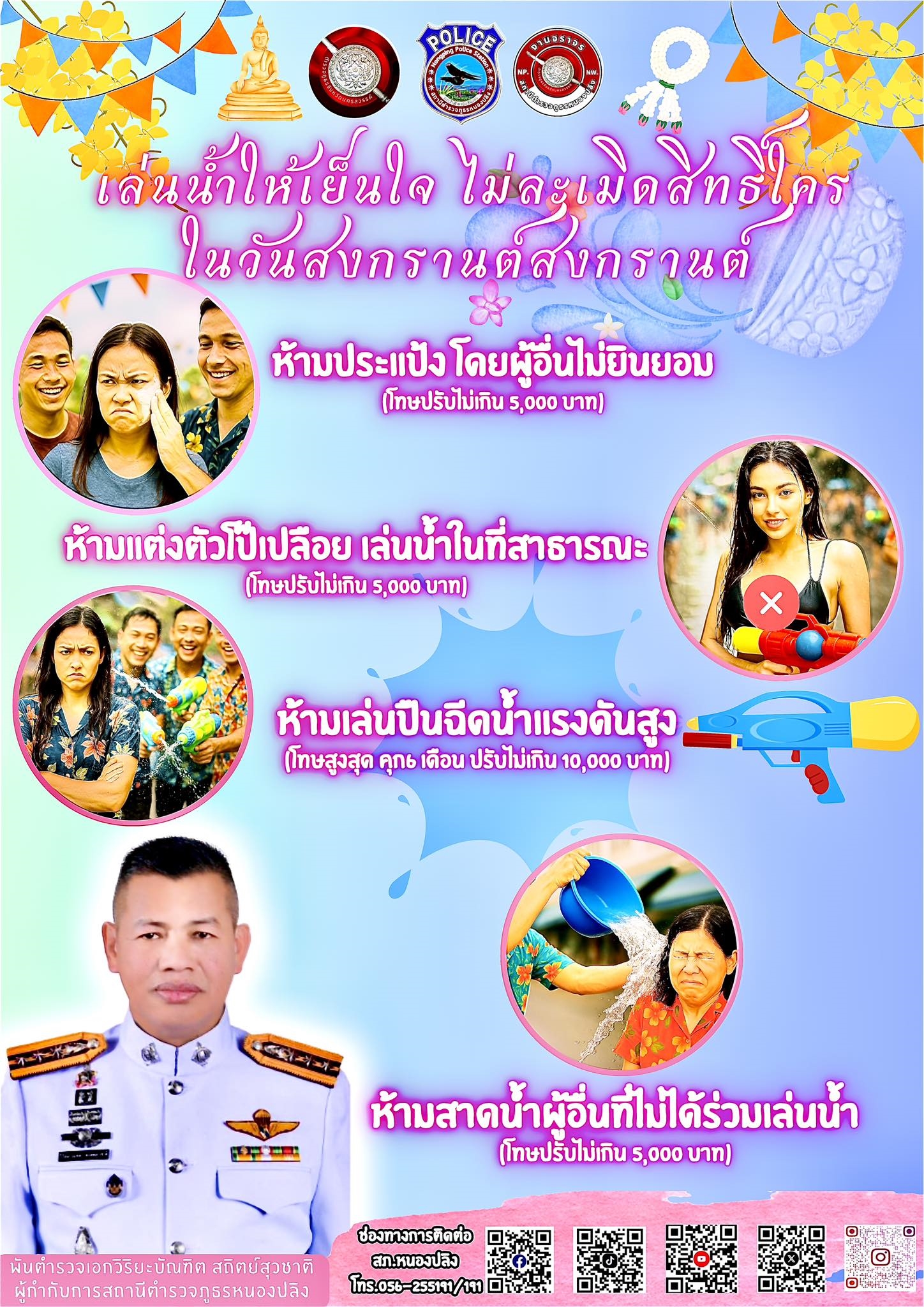 “เล่นน้ำอย่างเย็นใจ ไม่ละเมิดสิทธิ์ใคร ในวันสงกรานต์”💦👮‍♂️